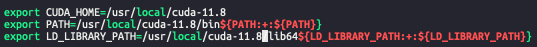 이후에 bashrc 파일을 수정하여 cuda 버전을 11.8로 인식되게 하였다(이후 터미널 재시작 필요)